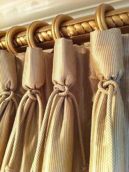 Укрась штору чуть ниже подвеса вот такими замечательными завязками в тон