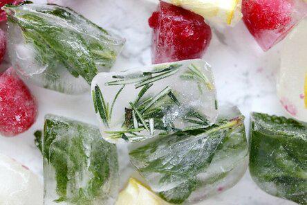 Как все гениальное, идея проста – в формы для льда разложить травы (например, мяту, розмарин, душицу, иван-чай), ягоды (малину, клубнику, смородину, землянику) и кусочки фруктов (лимонов, лаймов, апельсинов, яблок) или даже овощей (например, огруца) и убрать все в морозилку.
