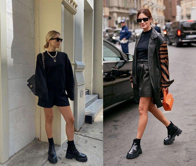 Самый универсальный вариант (с ним легче всего сочетать осеннюю одежду) — это челси в черном цвете. Но если вы в настроении поэкспериментировать, ищите контрастные варианты, где черная подошва и резиновые вставки, а сама обувь светлая.