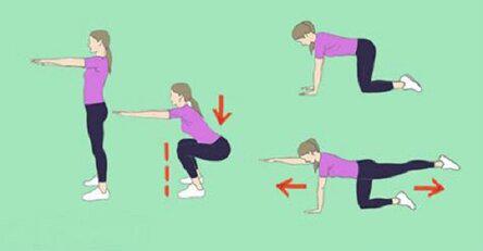 Для выполнения этого упражнения вы должны быть в положении стоя, ноги на ширине плеч друг от друга. Затем согните ноги очень медленно и положить вытянутые руки прямо перед вами. Убедитесь, что ваша спина прямая. Из этого положения сидя, вернитесь в исходное положение.