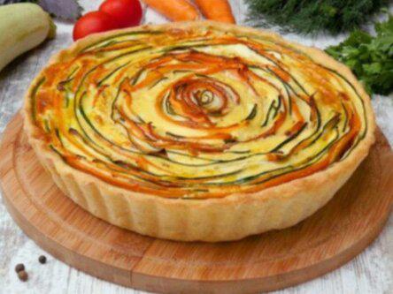 Киш с кабачками и морковью готовится очень просто, а с виду получается таким, будто пекарь на пару с художником над ним трудились часами.