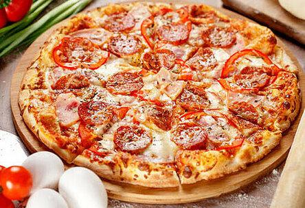 Сковороду сразу накрыть крышкой, как только сыр немного расплавился, пицца готова.