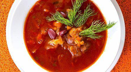 Постный борщ с фасолью получается не менее вкусным, чем его аналог с мясом.