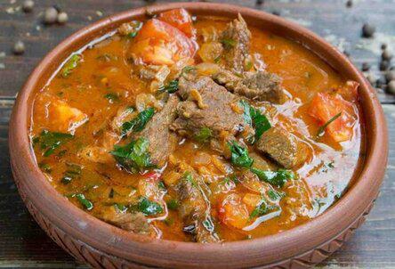 Подают чанахи в той же посуде, в которой готовили (не перекладывая на блюдо).