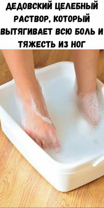 За это время раствор вытягивает из ног всю боль. Ноги вытирала полотенцем, смазывала кремом или лечебной мазью (можно оливковым маслом), массировала ступни, надевала шерстяные носки и ложилась спать.