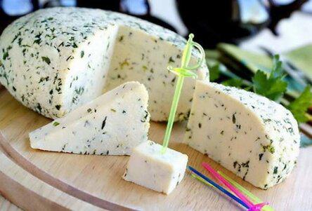 Вкус типа сулугуни или нежной брынзы. Можно делать с укропом, кинзой, грецкими орехами, оливками, паприкой.