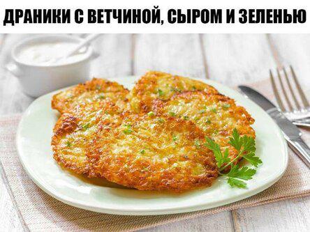 1. Лук, ветчину, картофель и сыр натереть на крупной тёрке.