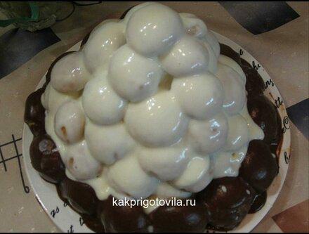 4. Все остальные шарики складывать внутрь гнезда, обмакивая в сметанный белый крем.
