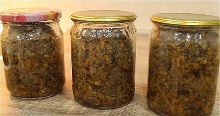 Икра по этому способу готовиться немного быстрее предыдущих, так как меньше подвергается термообработке. Но, при этом, чтобы она хорошо хранилась, мы будем стерилизовать ее в готовом виде прямо в банках. Возможно этот рецепт вам придется больше остальных по душе.