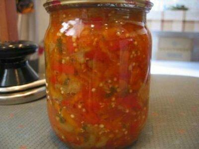 7. Разложить горячую овощную массу в заранее подготовленные (простерилизованные) банки, накрыть крышками и закатать.