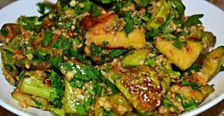 Заправку выливаем в кабачки и осторожно перемешиваем. Вкусно, как в теплом, так и в холодном виде.