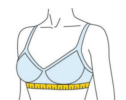 Стоя измерьте обхват непосредственно под грудью, держа измерительную ленту достаточно туго, но без сильного натяжения (она не должна сползать или, наоборот, впиваться в кожу).