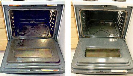 ?4. Открываем духовку и при помощи губки удаляем грязь. Если нужно, можно немного потереть. Для смывания понадобится ещё ведро тёплой мыльной воды.