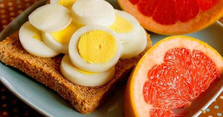 Завтрак: 2 яйца всмятку и стакан лимонной воды.