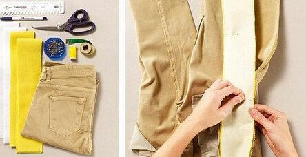 Раннее удобные джинсы стали давить на живот? Сделай вставки в области пояса в боковом или заднем шве.