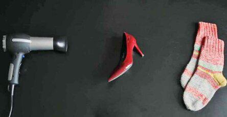 Ещё один способ – тёплые носки и фен. Наденьте зимние носки, всуньте (даже через силу) ноги в обувь, включите в розетку фен и в течение десяти-пятнадцати минут обдувайте обувку горячим воздухом. Вам будет жарковато, но ради таких красивых туфель можно и потерпеть, не правда ли?