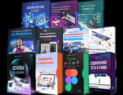 Ну, и, конечно же, 7 уникальных бонусов: Дизайн-система в Figma, Закулисные секреты создания больших проектов, Как улучшить свое портфолио в 2 раза, Как стать востребованным веб-дизайнером, Как оформить портфолио на Behance, Убойный набор для веб-дизайнера, Макет браузера в формате А4.