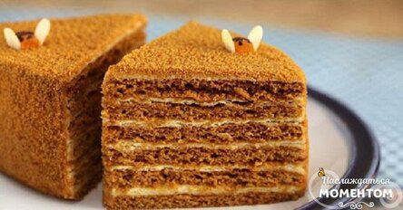 1. В кастрюльку кладем 100 гр. маргарина, 1 стакан сахара, 2 ст. л. мёда, 1 ч. л. соды и ставим на медленный огонь, помешивая, варим минут 10, до коричневого цвета. Снимаем с огня, добавляем 200 гр. сметаны, хорошо размешиваем и вбиваем 2 яйца.