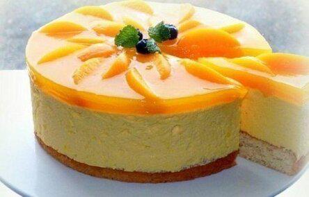 Торт-суфле можно готовить с основной или без нее. Количество слоев в торте тоже может быть разное. Проще всего трехслойная система устройства: основа, суфле, персики с желе. Такой торт станет вкусным и легким завершением праздничного обеда или ужина. К тому же он еще и очень красивый, особенно если украсить его яркими ягодами, которые составят эффектный контраст на фоне желтых персиков. Большую часть торта составляет легкое суфле и желе с фруктами, поэтому его оценят гостьи, постоянно подсчитывающие калории. Основа этого торта может быть бисквитная, песочная или кексовая. Выбирайте ту, которая вам больше всего по вкусу. С бисквитом торт получается самый нежный и легкий. Песочное тесто создаст контраст хрустящей основы и нежного суфле. Кексовая основа — компромисс между предыдущими.