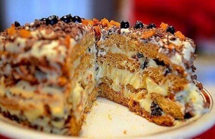 7.Перемажь коржи кремом и укрась торт на свой вкус. Приятного аппетита!