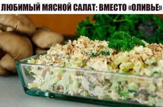 Мясной салат с запеченной курицей и грибами в моей