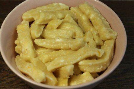 Каждую часть скатать в .форме тонкой колбаски, слегка приплюснуть, разрезать на небольшие кусочки.