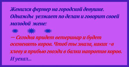 И уехал. Пришел ветеринар, и жена повела его в хлев.