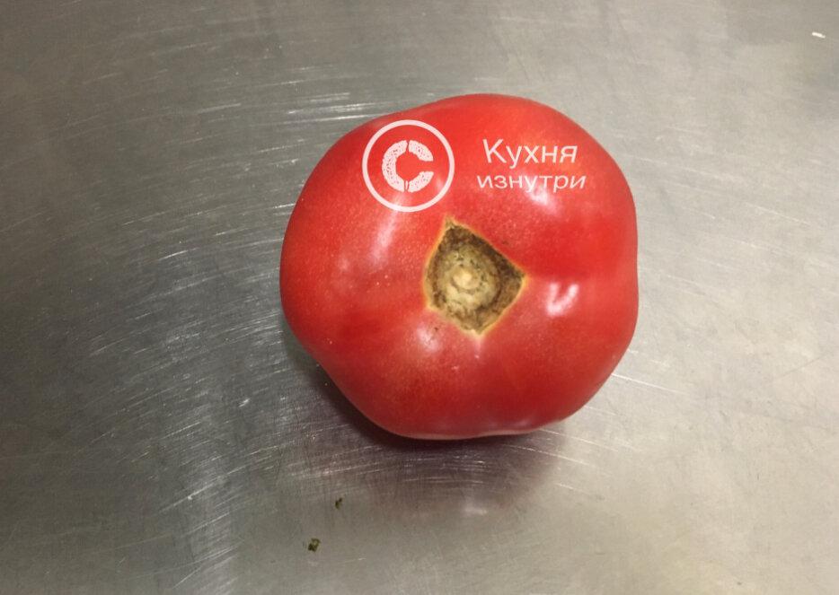 На следующем этапе режу помидор пополам. Некоторые мои знакомые измельчают его. Но я считаю, что должно остаться хотя бы подобие мякоти.