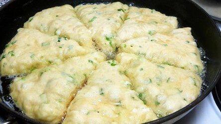 Затем добавьте в тесто лук, сыр и мешайте до однородного состояния.