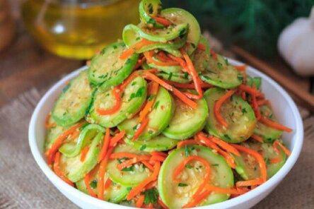 По истечении нужного времени кабачки промываем водой, а морковь отжимаем. Теперь ингредиенты объединяем вместе.