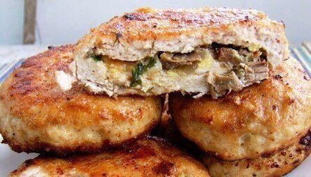 Для фарша: прокрутить через мясорубку филе, порезать мелко лук, посолить, поперчить, влить кефир, добавить отруби.