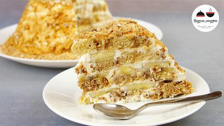 Готовится такой торт всего из трех продуктов. А получается потрясающе вкусным. Выпекать его ненужно, что и упрощает процесс. Также не нужно ничего заваривать, взбивать или вымешивать. Когда десерт хорошо пропитается, то станет похож на бисквит с бананом.