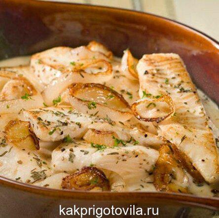 Рыбу нарезать небольшими кусочками. Зелень мелко покрошить. Сыр натереть на средней тёрке. Смешать кефир, сыр, зелень. Рыбу выложить в форму для запекания. Посолить, поперчить по вкусу. Залить соусом. Поставить в духовку. Запекать при температуре 180°C в течение 35-40 минут.