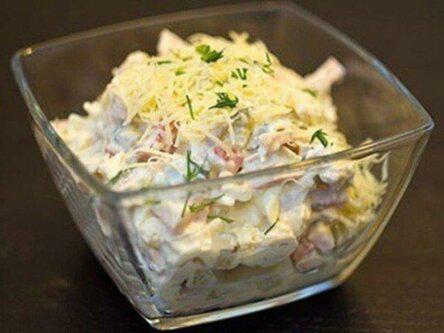 1. Режем кубиками отваренную куриную грудку.
