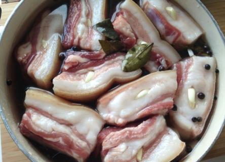 Для маринования берите небольшие куски сала обязательно с мясной прослойкой (а ещё лучше- прослойками), а в готовом виде подавайте деликатес в качестве закуски, нарезав его тончайшими ломтиками.