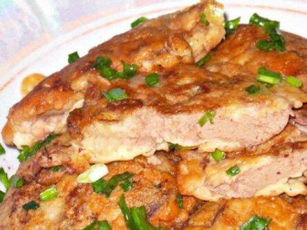 Печень в таком кляре получается очень сочной! Особенно понравится деткам!