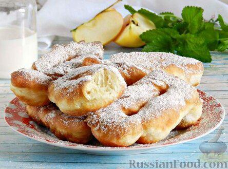 • 1,5 стакана кефира (или простокваши или кислого молока) • 1 яйцо • 3 ст. ложки сахара • 2 ст. ложки растительного масла • 0,5 ч. ложки соли • 0,5 ч. ложки соды 2 • муки около 3 стаканов (если тесто липнет к рукам, подсыпать еще) • по желанию – пакетик ванильного сахара или 1 ст. ложку коньяка