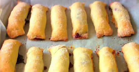 Песочное печенье- трубочки с вишней.