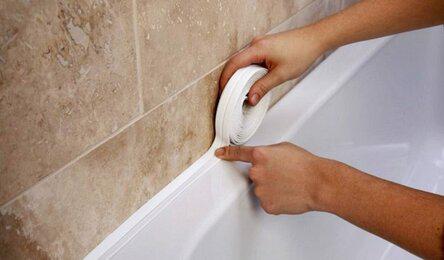 Самый быстрый и доступный способ для тех, кто планирует бороться с небольшими зазорами. В состав ленты входят фунгициды, так что проблема плесени решится сама собой. Ленту клеят на сухую чистую поверхность, сняв защитную полоску с нижней стороны.