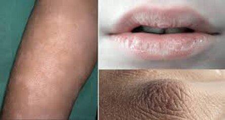 - Красные или белые изменения кожи — это очень похожи на угри и появляются на лице, спине, бедрах и руках. Это означает отсутствие витамина Е, А и жирных кислот. Вы должны держаться подальше от транс-жиров (маргарин) и насыщенных продуктов и потреблять здоровый жир. Вы можете получить витамин А через морковь, красный перец, сладкий картофель и зеленые овощи, в то время как витамин D можно приобрести, подвергая воздействию солнца 10 минут в день.