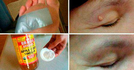 Папилломы, как правило, является результатом трения от одежды. Вы должны окунуть ватный диск в яблочный уксус или масло дерева, и прикладывать на место папилломы. Повторяйте эту процедуру несколько раз в день, пока они не отпадут. Если вы все же вместо яблочного уксуса будете использовать масло дерева, это займет немного больше времени, так что вы должны повторять процедуру в течение 10 дней.
