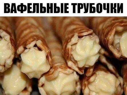 Желток+сахар+молоко+чуть муки+ ванилин варим на медленном огне. Затем добавляем в размягченное взбитое сливочное масло. Начиняем наши трубочки с 2х сторон: Удобно начинать с помощью кондитерского шприца или мешочка: Из данного количества теста получается около 18 трубочек или вафельных рожков.