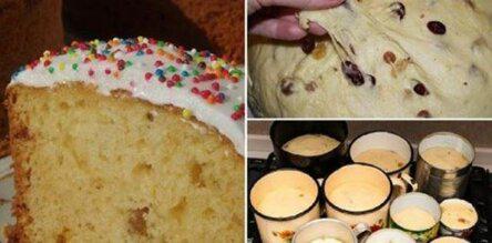 Опару для такого теста ставят с вечера, а утром замешивают тесто и выпекают куличи. Самое главное — выбрать качественные живые дрожжи. Из указанного количества продуктов получается примерно 6 куличей по 500 граммов каждый.