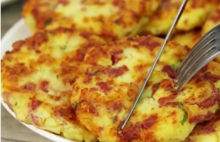 Вам понадобится: 150 г копченой колбасы, 500-700 г картофеля, 150 г сыра, 2 яйца, 2 ст.л. муки, соль, пучок петрушки, черный молотый перец.