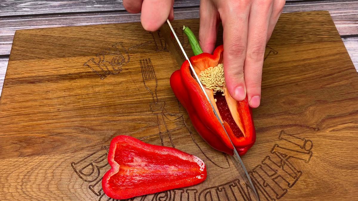 4. Острый перец нарезаем колечками и добавляем к перцу