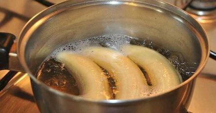 - Вскипяти воду с корицей. Помести в теплую воду бананы, дай воде закипеть.