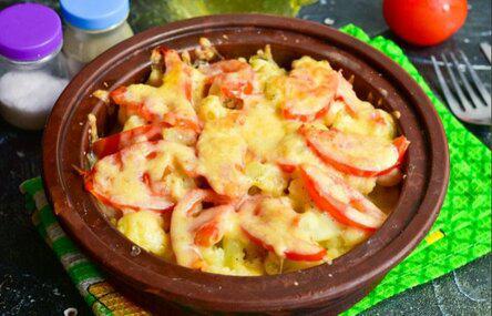 Нарезаем помидор от шкурки и укладываем сверху капусты.