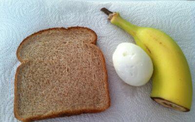Завтрак: черный кофе или чай, 1 вареное яйцо, 1 ломтик тоста, 1 банан